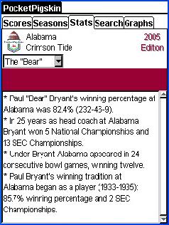 The team-specific extra section for Alabama highlights Paul "Bear" Bryant's tenure as the Crimson Tide head coach. |