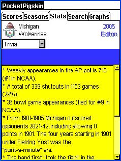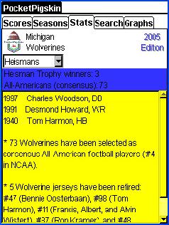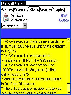 The team-specific selection of the Stats Tab contains information that is unique to your school such as attendance records in the Big House, etc. |