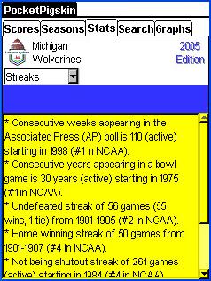 The Streaks selection displays active and past streaks of interest for your team. This may include winning/undefeated streaks, season records, poll results, etc. |